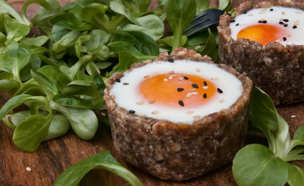 Aplatissez chaque boule de pâte et tapissez-en les empreintes de moules à muffins jusqu’au bord du moule (veillez à bien suivre cette étape pour éviter que l’oeuf déborde !).