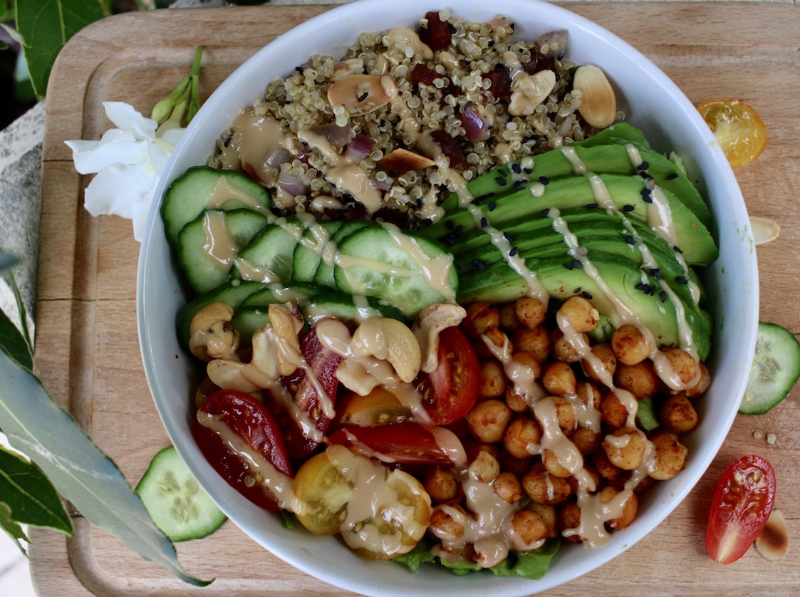 Adaptez les quantités à votre appétit : augmentez les quantités de pois chiches et de quinoa si besoin !