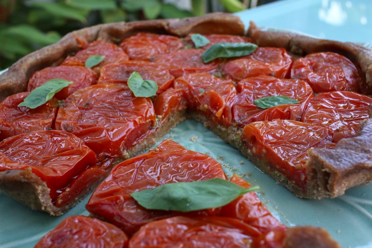 Etalez la pâte sur un papier cuisson et disposez-la sur les tomates. Repliez les bords.