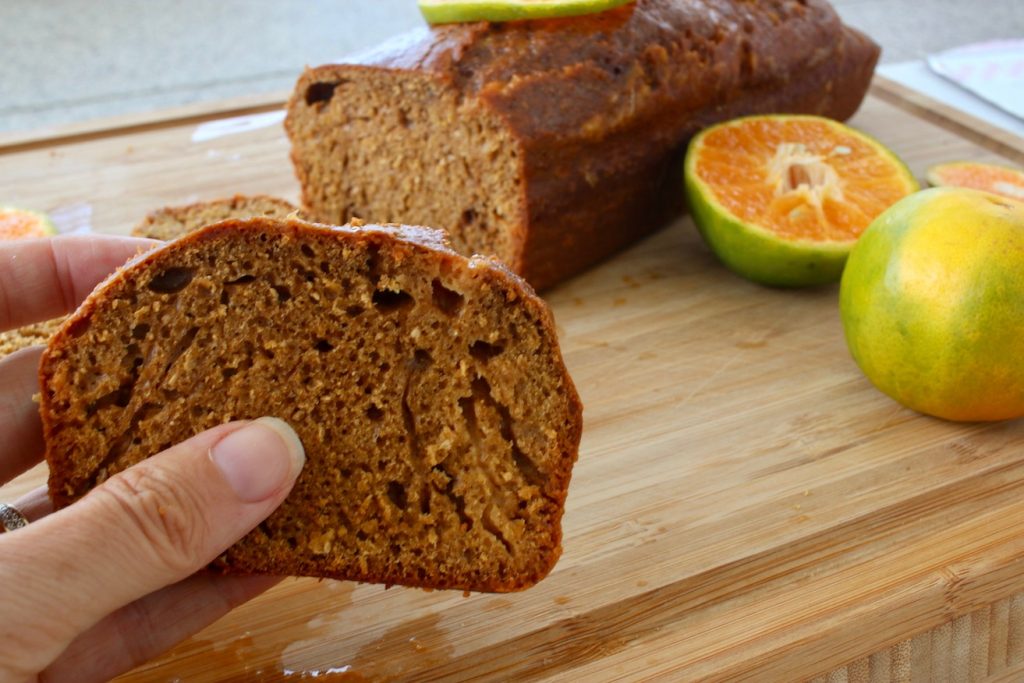 Dès la sortie du four, versez lentement les 100 ml de jus d'orange restant sur le gâteau (dans le moule à cake) puis laissez le gâteau absorber le liquide.