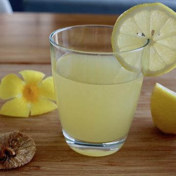 Enlevez la figue et les rondelles de citron puis filtrez la boisson à l'aide d'un entonnoir et d'un filtre à mailles très fines.